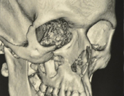 Fracture de la pommette droite et du plancher de l'orbite- cliché scannographique 3D pré-opératoire: